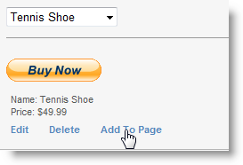 With the Payment Buttons for PayPal panel open, adding these buttons to your page requires just a single click.